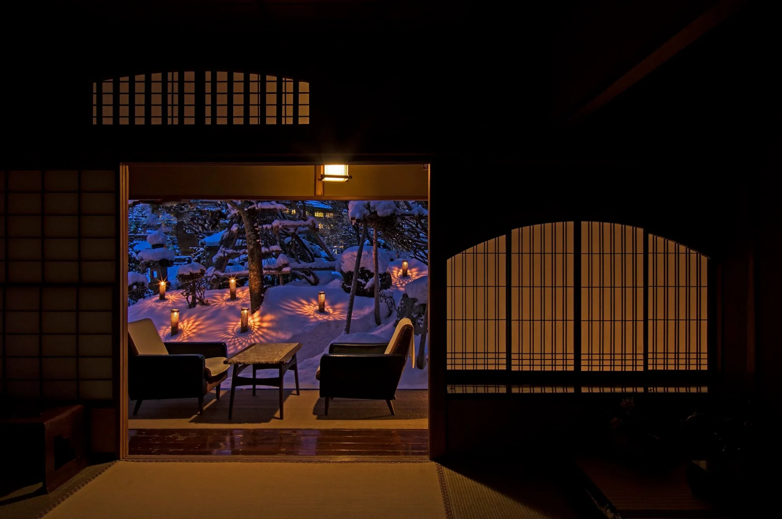 ฮิกาชิยามะออนเซ็น เป็นย่านออนเซ็นเก่าแก่ที่มีประวัติยาวนาน ตั้งอยู่ใจกลางเมืองไอสึ วากามัตสึ ส่วนโรงแรม “มุไคทาคิ”นั้นคือเรียวกังที่ได้รับการขึ้นทะเบียนเป็นมรดกวัฒนธรรมที่จับต้องได้ของประเทศญี่ปุ่น ในเรียวกังนี้ยังคงรักษาบรรยากาศแบบญี่ปุ่นดั้งเดิมไว้ นอกจากนี้เรายังสามารถมองเห็นสวนญี่ปุ่นซึ่งอยู่ใจกลางท่ามกลางหิมะที่ตกโปรยปรายจากระเบียงได้ด้วย
